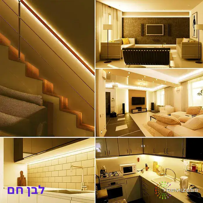 סרט לד LED למטבח. אור לבן חם - 5 מטר