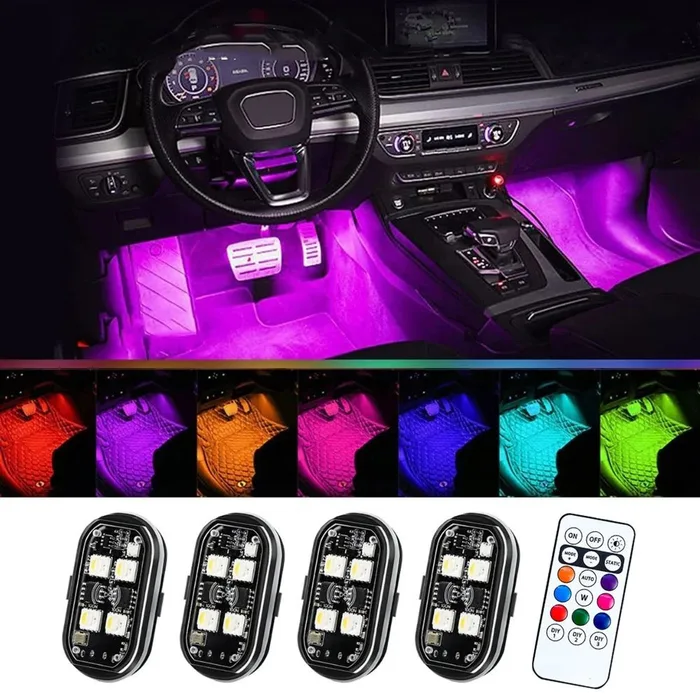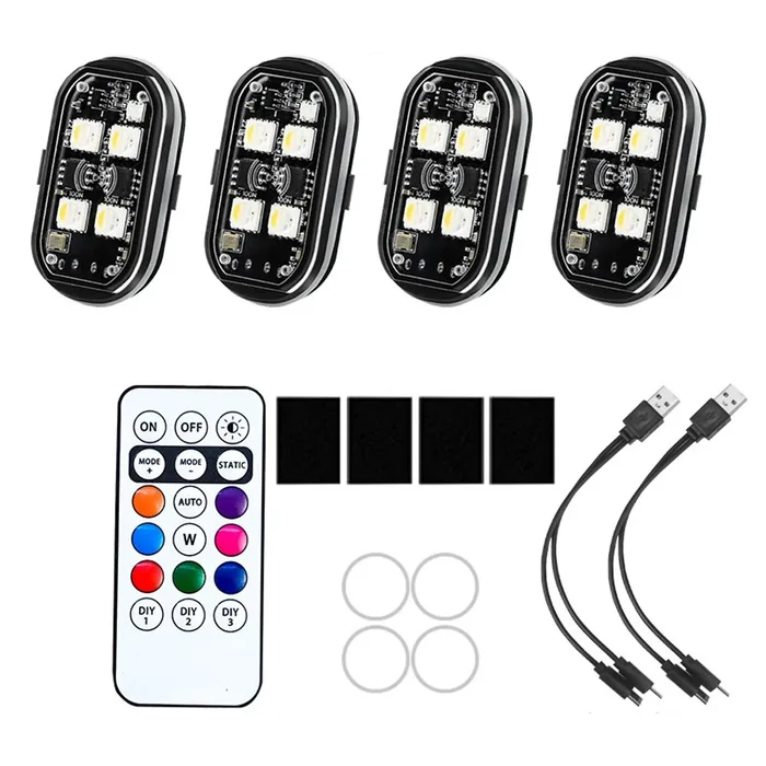 תאורת לד נטענת לרכב מחליפה צבעים מוגנת מים עם שלט - 4 יח'